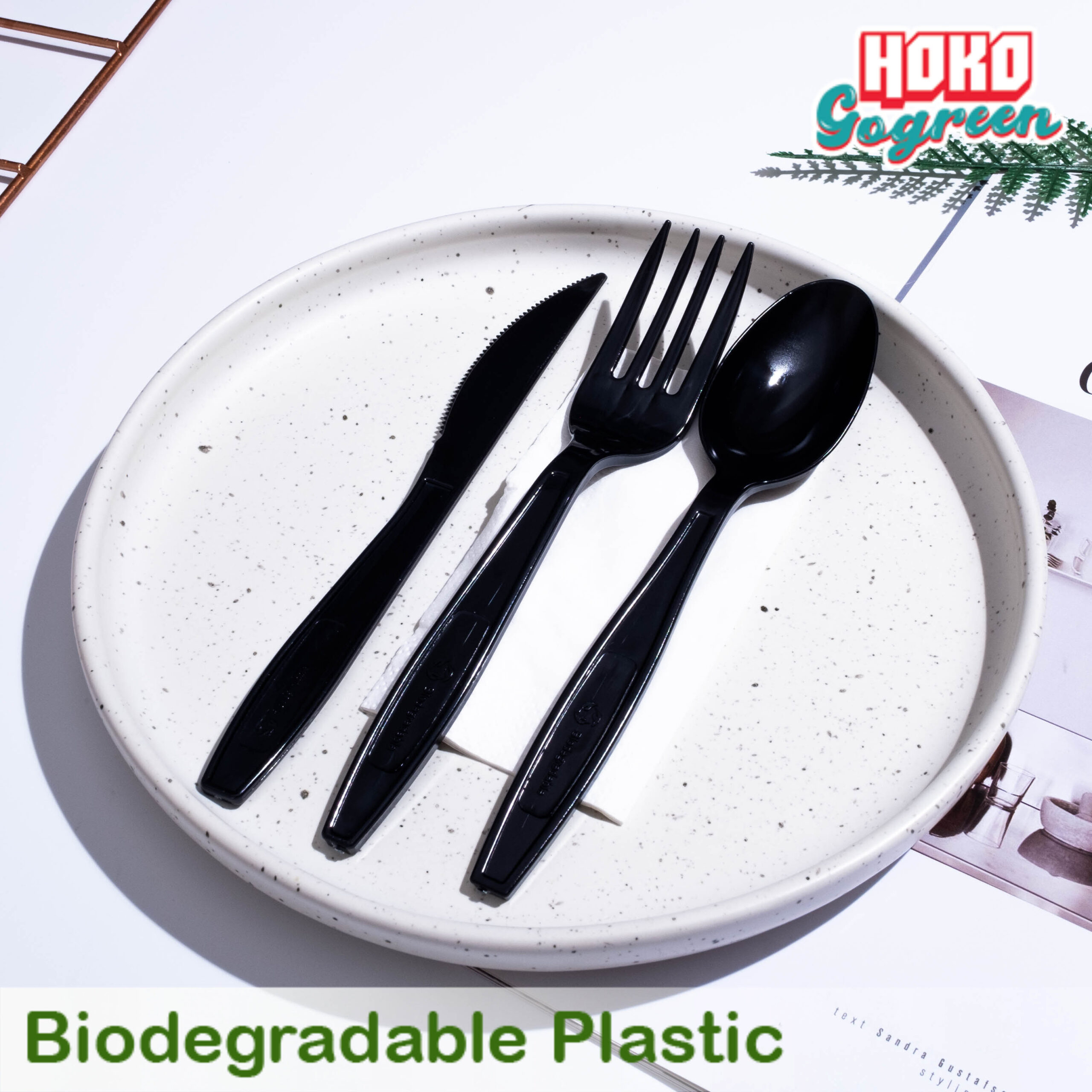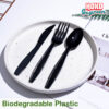 ชุดช้อนส้อมมีด พร้อมทิชชู่ พลาสติกย่อยสลายได้สีพาสเทล แพ็คคู่ สีดำ