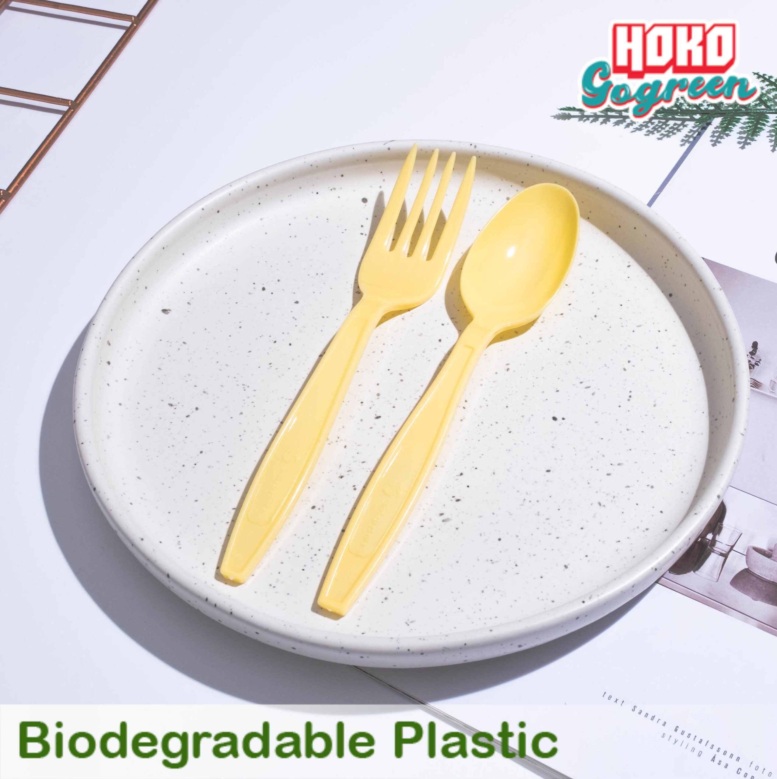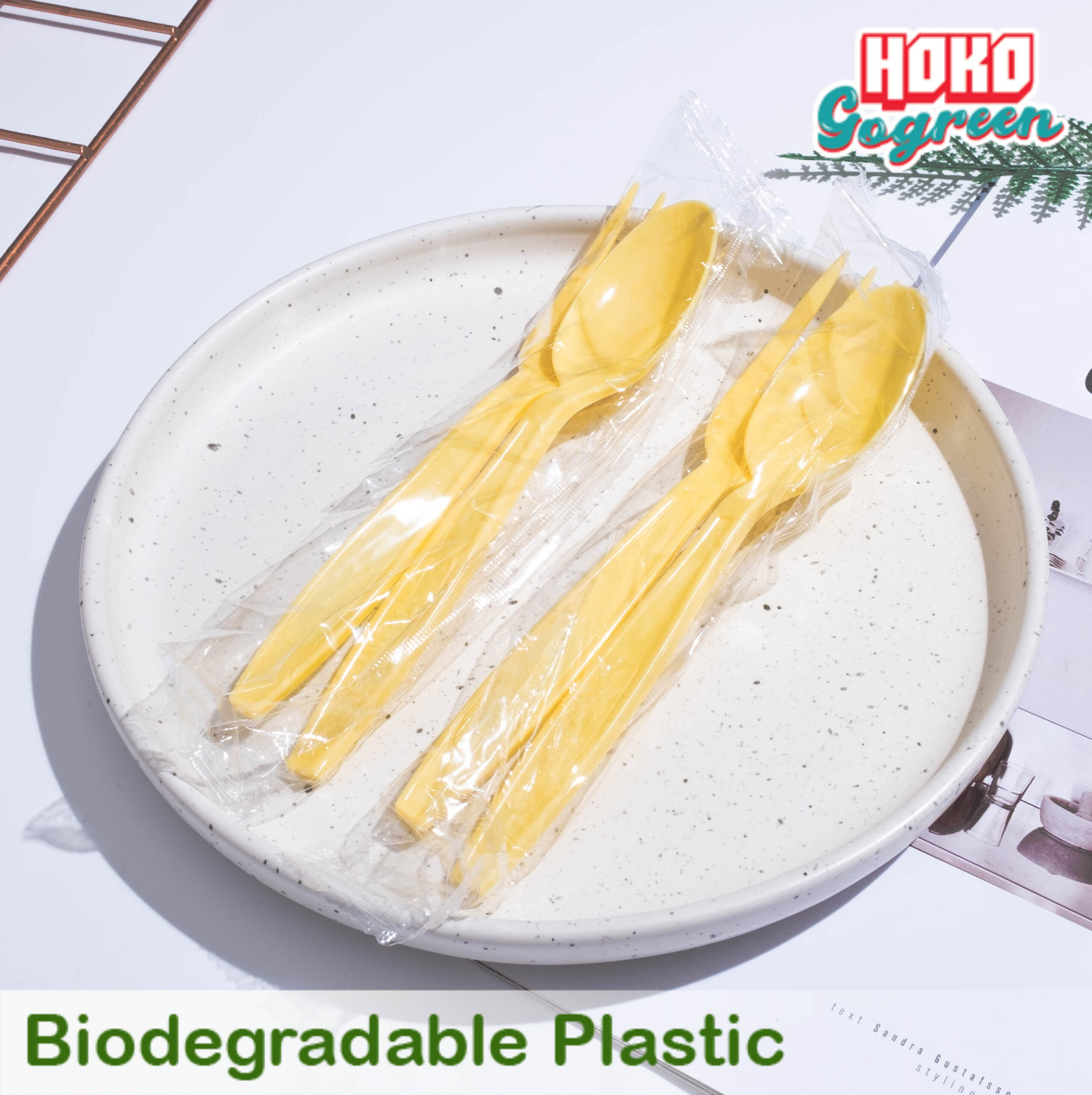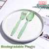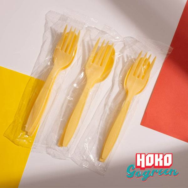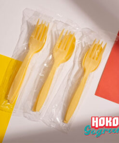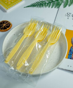 ชุดช้อนส้อมพลาสติกย่อยสลายได้สีพาสเทล แพ็คคู่ สีเหลือง
