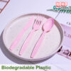 ชุดส้อมมีด พลาสติกย่อยสลายได้สีพาสเทล แพ็คคู่ สีชมพู