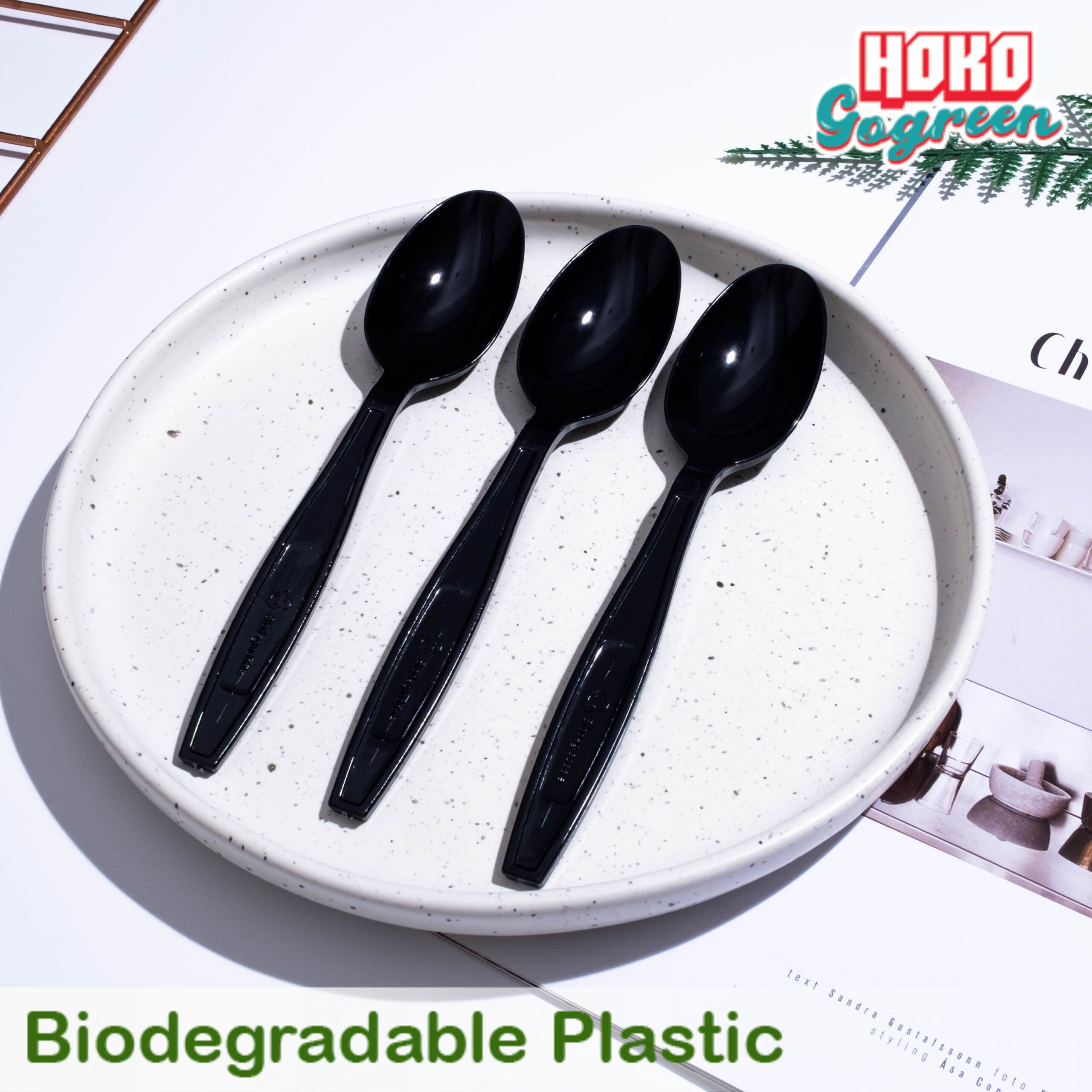 ช้อนพลาสติกย่อยสลายได้สีพาสเทล สีดำ