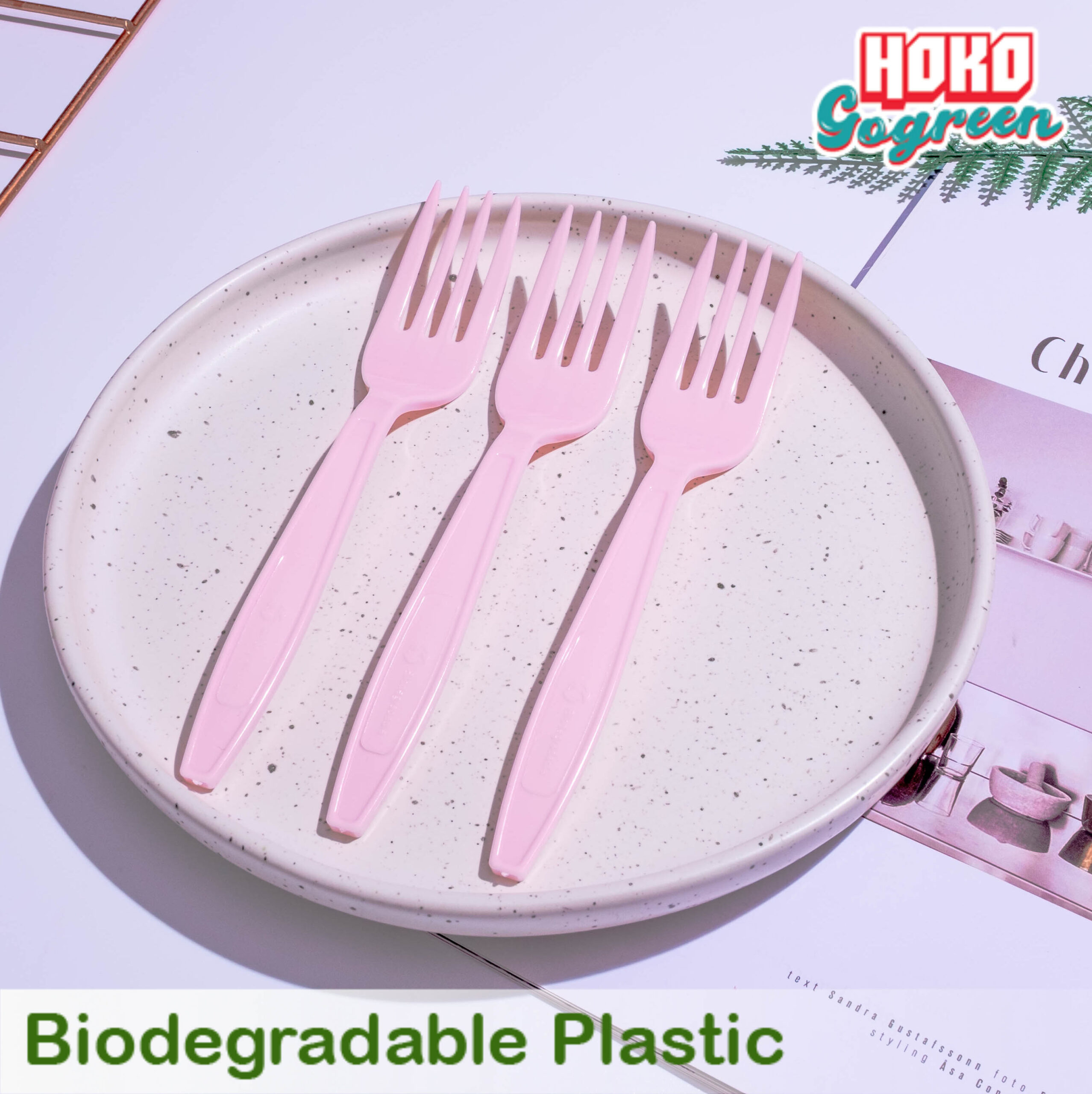 ส้อมพลาสติกย่อยสลายได้สีพาสเทล สีชมพู